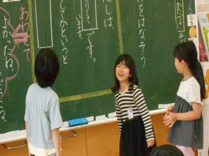国語の時間に「わけをはなそう」という学習をしました。「わたしは、うれしいです。どうしてかというと、〜だからです。」を、ペアで考えて発表しました。