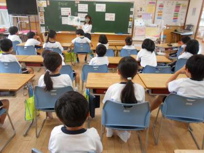 月曜日の朝は、読み聞かせから始まります。今日は、梅雨に関係のあるお話を読んでいただきました。みんな集中して聞いていました。