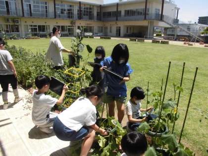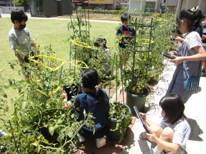 どんどん大きく成長した野菜。収穫している子供も増えてきました。