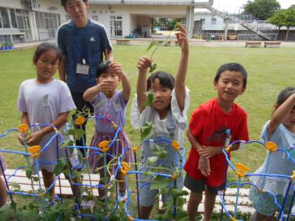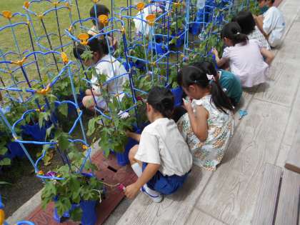 1年生 アサガオのつるがのびたよ!花がさいたよ!