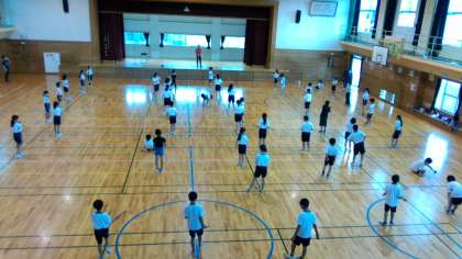 5年 縄跳び教室1 公開日 2023/06/30 更新日 2023/06/30 5年生のページ 縄跳び師の田口師永(たぐちのりひさ)先生をお招きして、縄跳び教室をしました。跳ぶ技だけでなく、腕に縄を巻き付けたり、縄を足で止めたりする様々な技を習いました。 「むずかしいよ」「先生できた!!」という声が所々で聞こえてきました。交差する腕を交互にして左右のバランスを意識して跳ぶなど、普段は意識していない体の動かし方を意識しながら取り組みました。