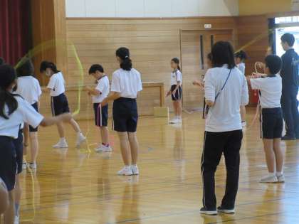 3年生から6年生まで、各学年1時間ずつ、縄跳びのこつを、実技を通して分かりやすく教えていただきました。教えていただいたことを参考に練習に励み、縄跳びの技能を上達させたいです。