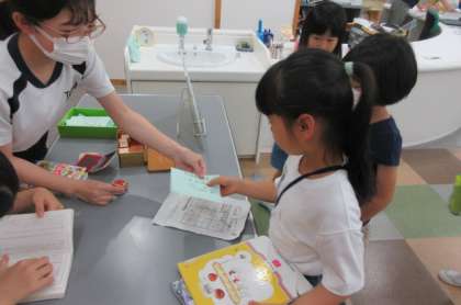 休み時間に、図書委員会が企画した「ブックビンゴ」に挑戦しました。