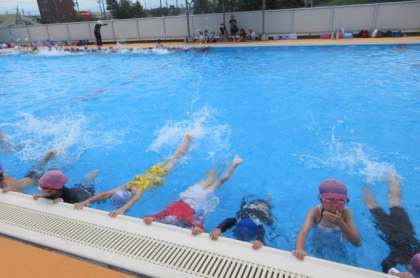 息継ぎしながらバタ足をする練習をしたり、水中じゃんけんをしたりしました。