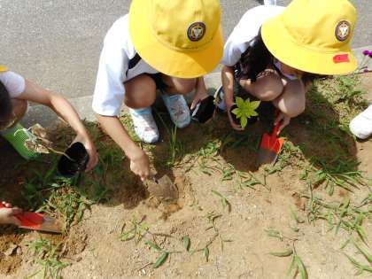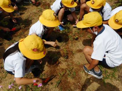 理科で育てている植物を植え替えました。土の中で成長していた根を見て、「ひげみたい」とつぶやいていました。