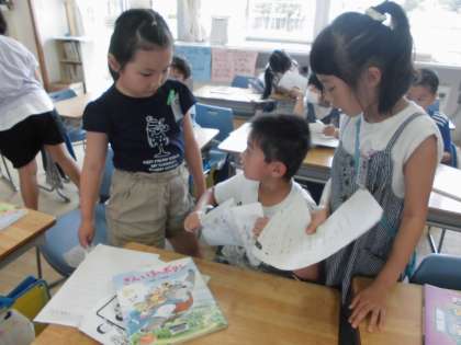 学校のすぐ近くにある東部分館へ見学に行きました。図書館の利用の仕方やマナーを聞きました。また、実際に本を借りました。家でゆっくり読んでみましょう。学校に帰ったら、メモしてきたことを基に、国語科「こんなもの、見つけたよ」の学習に生かしました。