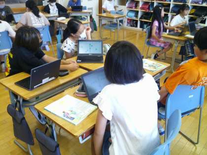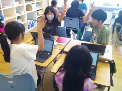 道徳の時間に、「廊下は歩く」「挨拶をする」「話すときと聞くときのメリハリをつける」等はルールなのかマナーなのか、ジャムボードで近いと思う方に付箋を動かしながら意見を伝え合いました。そして、ルールをマナーに高めるためには一人一人の心掛けや思いやりが大切だと気付いていました。