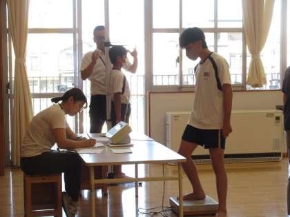 発育測定・視力検査を行いました。自分の身体の発育の度合いや健康についての関心を高めることができたようでした。(写真は6年生の様子です。)