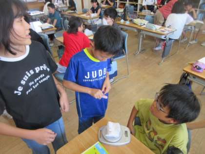 干した後は軽くなるという結果は、実験しなくても多くの子は分かっていました。ですが、実際に洗濯機にかけ、日当たりのよい場所で干し、測ってみる。そんな経験が大切だと実感した理科の学習になりました。