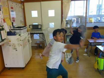 紙鉄砲を作って、大きな音がなるように練習しました。