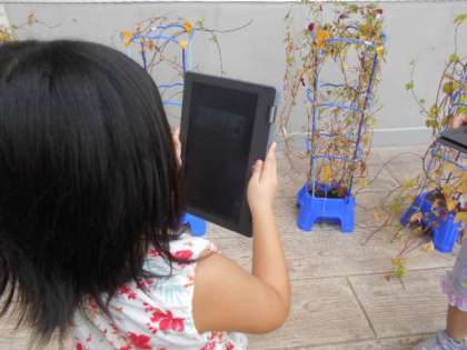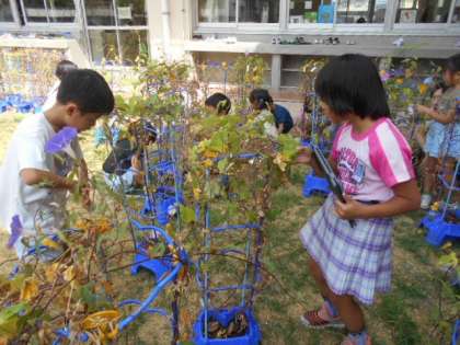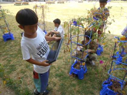 生活の時間に、種が付いているところを観察したり、タブレット端末で撮影したりしました。たくさん種が取れて喜んでいました。