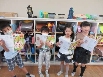 音楽では、「虫のこえ」という歌をグループで練習しました。たくさんの虫や鳴き声がでてきて、とても楽しい曲です。今日は、いろいろな虫たちが鳴いている様子を思い浮かべながら歌い方を工夫しました。鳴き声を分けて歌ったり、もりあがるところはみんなで大きく歌ったり、一人ずつ交代したがら歌ったりしました。