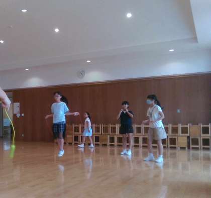 係活動の企画で、縄跳び大会を行いました。今日は前跳び選手権があり、子供たちは1位を目指して熱心に参加していました。