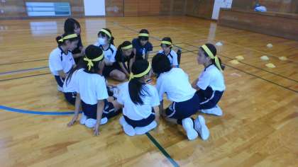 5・6年生は、学年競技でタイヤ引きに取り組みます。