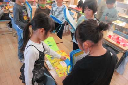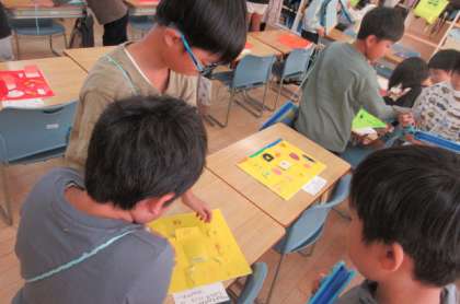 窓の形や開き方、開いて見える世界や飾りの工夫等、友達の作品のよさをたくさん見付けました。