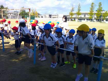 はじめての鉄棒の学習では、あがる、おりるだけでなく、ふとんほしや空中じゃんけんにも挑戦しました。