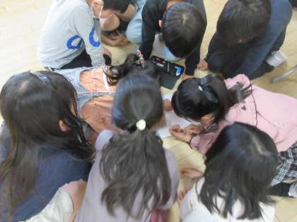 団の仲間と目あてを立てたり作戦を考えたりしました。全力プレーで勝利しようと張り切っています。