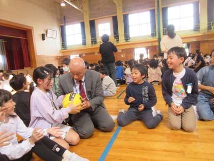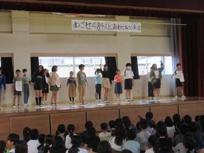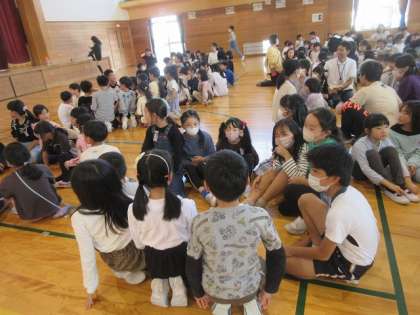 3年ぶりに、全校児童が体育館に集まって全校集会を行いました。