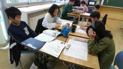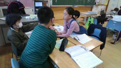 他人に親切な行動をした経験と、親切な行動をするには何が大切なのかをグループで話し合いました。グループで話した内容は記録して、グループごとに報告者が発表しました。