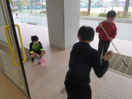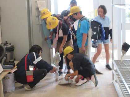 運動会は終わりましたが、その後も玄関がグラウンドの砂で汚れることが多く、引き続ききれいにする活動を行っています。美化委員会や高学年だけでなく、3年生や4年生が朝や大休憩、放課後に自分から進んで活動を行っています。進んで環境に働きかける子供たちの姿に感心し、喜んでいます。
