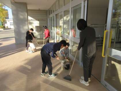 9月の運動会練習の際に、グラウンドの砂で汚れた玄関をきれいにしようとする活動が美化委員会を中心として始まりました。