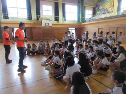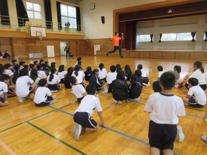 陸上競技の専門家2名を講師にお招きして、「走り方教室」を行いました。今日は3年生と5年生の子供たちが参加しました。
