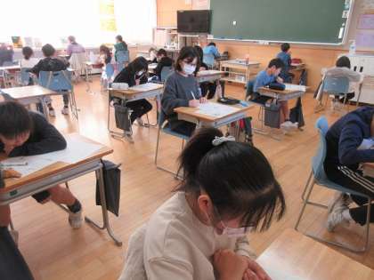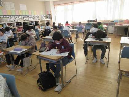 今日は算数と社会に挑戦しました。黙々と取り組んでいました。