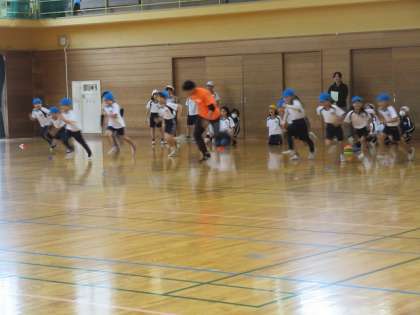 先週に続いて、陸上競技の専門家2名を講師にお招きして、「走り方教室」を行いました。今日は1年生と2年生、4年生の子供たちが参加しました。