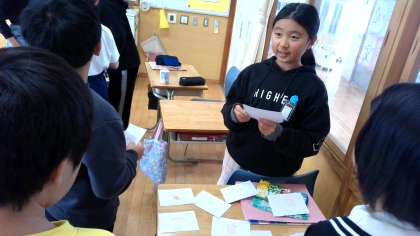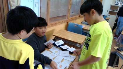 互いに値段を聞いて、ほしい商品をやり取りしました。