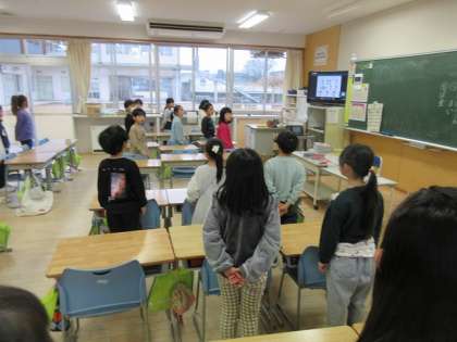 東部小学校は12月10日に創校85周年を迎えたので、本日「創校記念式」を行いました。当初は体育館での予定でしたが、感染症予防のためリモートで行い、子供たちは各教室で参加しました。