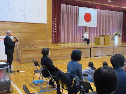 3学期から着任する教員の紹介式がありました。東部っ子たちと楽しく学習や活動に取り組んでいきたいです。