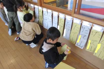 練習の成果を発揮しようと、集中して一画一画心を込めて書いていました。とても上達していました。