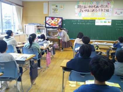 新年初めての外国語の学習を行いました。歌を歌ったり、動画を見たりしながら、「日本のすてきなところを紹介しよう」という見通しをもつことができました。