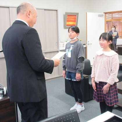 各学級の代表児童に、校長先生から賞状が授与されました。