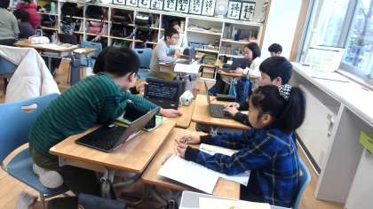 それぞれが自分の気になったことを端末のスライドにまとめ、画像や動画をファイルに挿入して分かりやすい内容になるように気を付けて発表をしました。