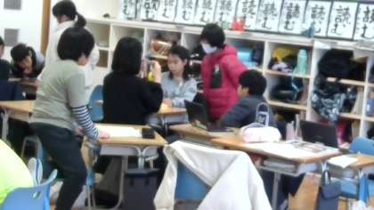 人が母親の体の中でどのように育つのか、調べた内容を生活班の友達に発表をしました。
