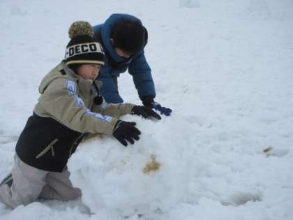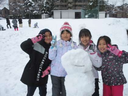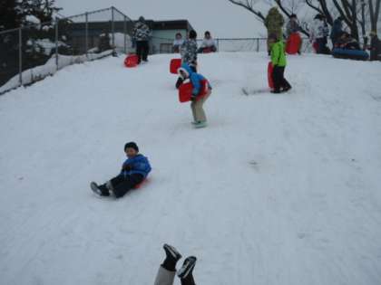 そこで、子供たちは楽しく雪遊び。雪だるまを作ったり、そり遊びをしたりしました。