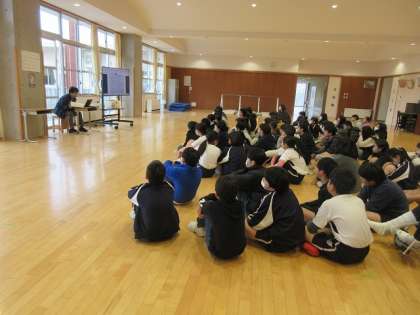 最後に、取り扱いやルールについての説明を聞きました。今後、グラブを各学級に回覧します。