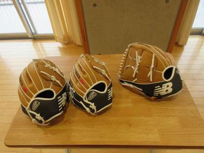 寄贈されたグラブを見る子供たちの目は、きらきらと輝いてました。