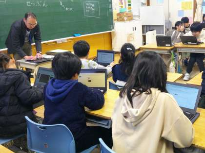 情報教育の先生から、スライドの作り方について、丁寧に教えていただきました。文字の大きさや色を変える方法、画像の挿入方法等を学び、自分でも試しながら楽しく学びました。
