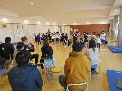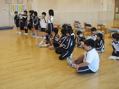 リズムに合わせて歌ったり、自分の得意なマットの技を披露しました。
