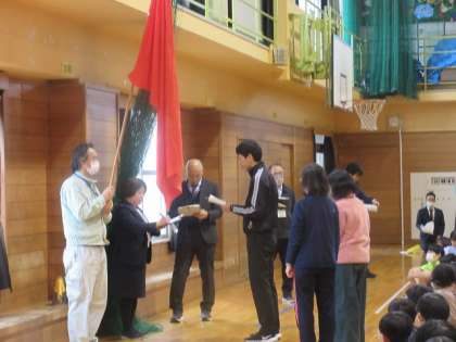 今回は休憩時間に火災が発生したという想定で行いました。放送を聞いて、近くにいる人たちで集まって体育館へ避難しました。自分たちで避難経路を判断して移動しました。上級生が下級生を誘導する場面も見られました。