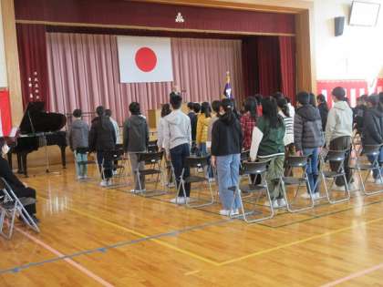 引き続き、同窓会会長さんをお招きして、同窓会入会式を行いました。会長さんの歓迎の言葉に続いて、卒業生代表が入会の言葉を述べました。最後に校歌を歌いました。東部小学校の同窓生としての自覚を高めることができました。