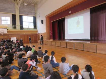 修了式・離任式が終わった後、明日からの春休みに向けて、生徒指導主事から話がありました。