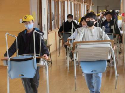 下校前に、4・5年生が、新年度に向けて机・椅子の移動作業をしました。一生懸命にがんばって作業をしていました。
