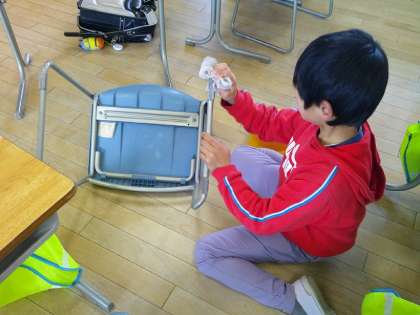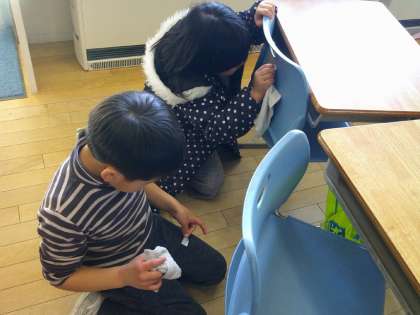 1年間使った、机や椅子、ロッカーをきれいにしました。名前の札をはずし、隅々まで丁寧に拭きました。次に使う人のことを考えて、活動することができました。