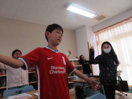 今日は、体を動かしながらチャンツをしたり、互いの好きなものについて尋ねあったりしました。