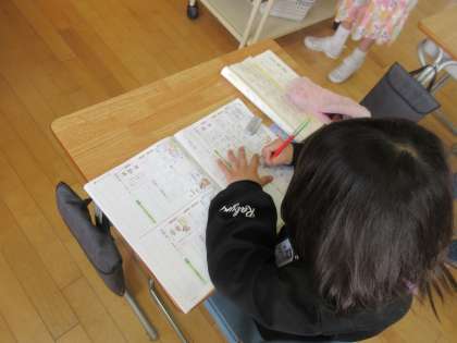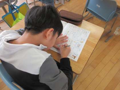 新出漢字を練習しています。これから学習する漢字の多さに驚きながらも、真剣に取り組んでいました。