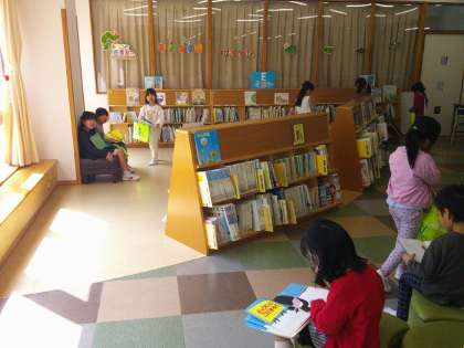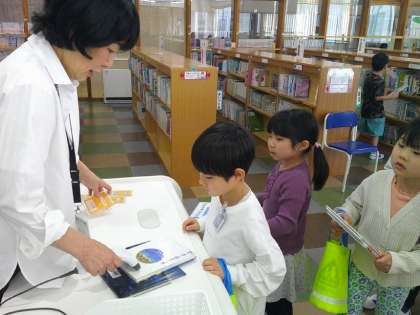 図書室でオリエンテーションがありました。本の扱い方を学んだり、楽しい本を紹介してもらったりしました。