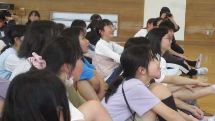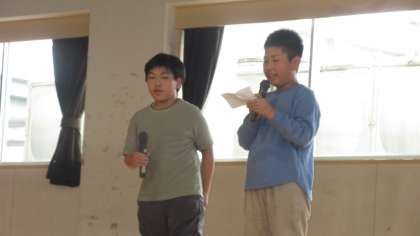 たっぷり走り回った後は、インタビューです。インタビュー係の人が、集会で楽しかったことや思い出を振り返りました。終わりの言葉担当の人は、集会の「楽しむをかたちに 学年の仲を深めよう」という目当てをもう一度確認し、今後の学校生活につながるような言葉を述べてくれました。